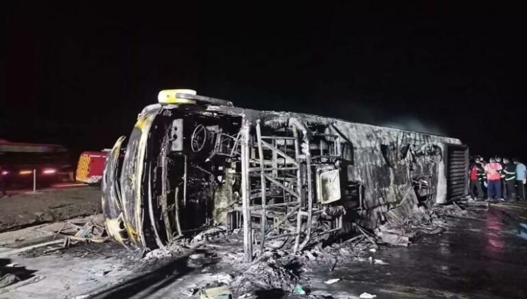 Imágenes divulgadas por los medios muestran el autobús envuelto en llamas, y posteriormente los restos calcinados del vehículo en la autopista.