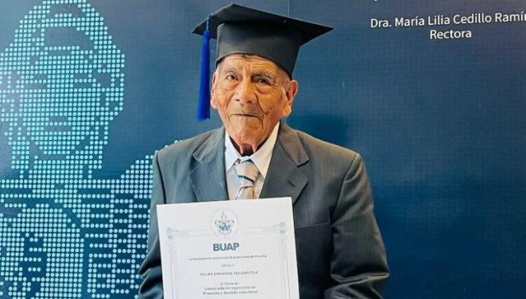 La institución dio a conocer por medio de Instagram una serie de postales de Don Felipe con su título, en el que lo felicitaron por su gran logro. Las imágenes fueron acompañadas de una frase del graduado. “Lo que me ayuda es el deseo de seguir estudiando, aunque sea grande, voy a seguir”, externó. “¡Felicidades, Felipe, por este logro!”, agregó la institución.