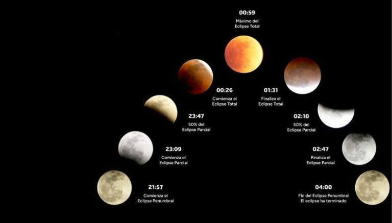 La Asociación Salvadoreña de Astronomía compartió los horarios de cada fase y la hora en que se podrá ver. Estos son: