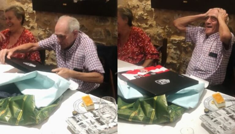 Uno de esos gratos momentos ocurrió en España, cuando una familia agasajó a su abuelo de 90 años, recién cumplidos, con la camiseta del Atlético de Madrid.
