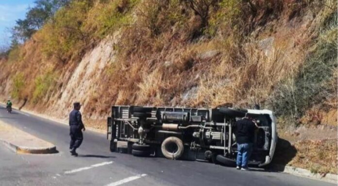 La Policía Nacional Civil (PNC) ha informado que, sobre la carretera Panamericana, en el ingreso al redondel de Apopa, un camión volcó. Las autoridades han comunicado que las personas ya fueron auxiliadas. Elementos policiales permanecen en la zona orientando el tráfico, en el sentido de Soyapango hacia la Troncal del Norte.