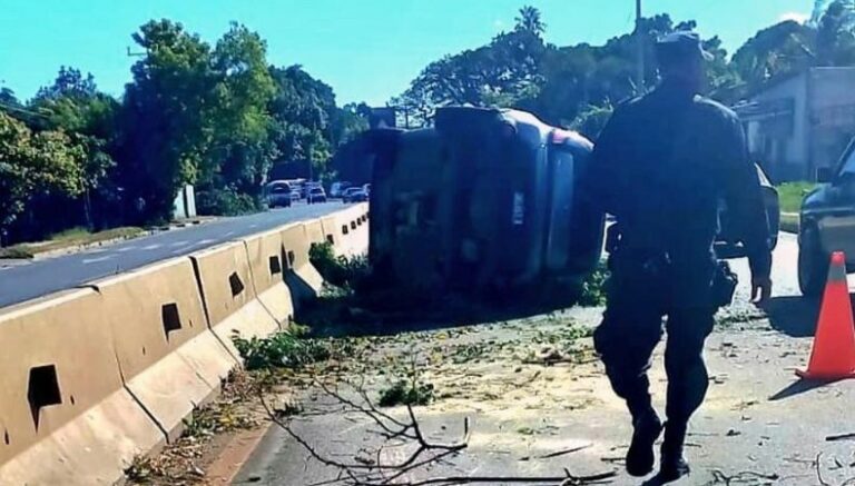 Los accidentes de tránsito siguen reportándose a diario. En las últimas horas, las autoridades registran un nuevo caso. Se trata de un percance en la carretera Panamericana, en el sentido que conduce de Ahuachapán a Santa Ana, donde un vehículo volcó.