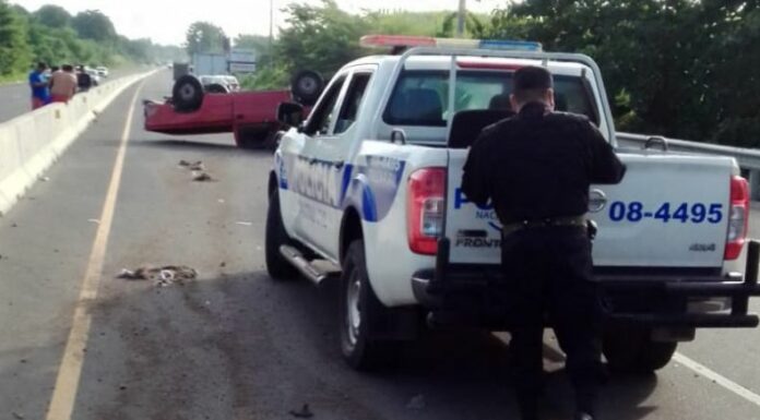 Elementos de la Policía Nacional Civil (PNC), informó de un accidente de tránsito en el km 60 de la carretera que conduce hacia Zacatecoluca, La Paz, donde el conductor de un pick up perdió el control y volcó.