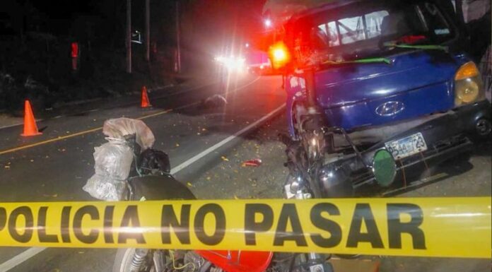 Las autoridades informan que un motociclista, de 68 años, falleció al ser impactado por el conductor de un camión que invadió su carril. El motorista del camión ha sido identificado como José María Galdámez Escobar, quien se quedó en el lugar.