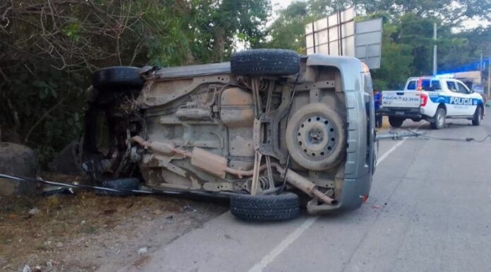 Por medio de la cuenta X de la Policía Nacional Civil (PNC), reportó un accidente de tránsito, donde una camioneta volcó, luego de perder el control. El suceso ocurrió en el km 112 de la carretera Internacional, en el sentido hacia frontera Anguiatú.