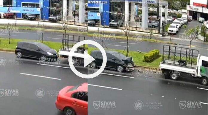 Las cámaras de seguridad del sistema de videovigilancia de la Alcaldía de San Salvador Centro, captaron en el momento exacto donde se registró un accidente de tránsito, el hecho ocurrió sobre el bulevar Los Próceres, en San Salvador.