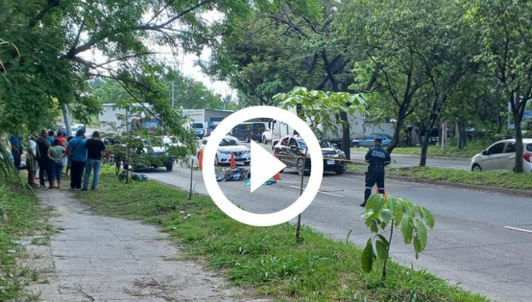 Esta tarde, un motociclista perdió la vida en un accidente de tránsito en la carretera de Oro. Esto ocurre metros adelante de la plaza de los típicos, en el sentido hacia Alta Vista. Elementos de la Policía Nacional Civil (PNC) ya se encuentran en la zona. Aún se desconocen las causas que provocaron el hecho.