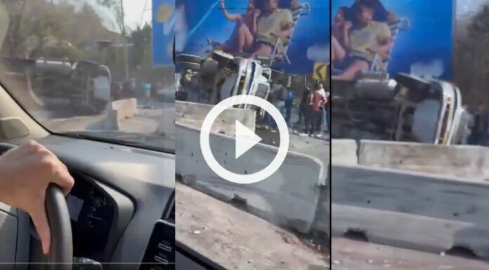 Reporte de un accidente automovilístico por un camión que ha volcado, llevándose de por medio los separados en la carretera al Puerto de la Libertad, exactamente en la curva El Papaturro.