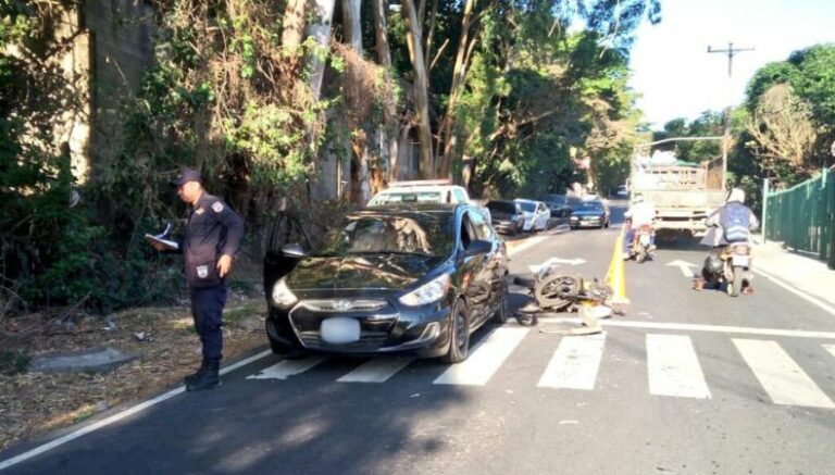 Según reportes de las autoridades, el motociclista resultó con lesiones, por lo que fue trasladado a un hospital. Elementos de la PNC se encuentran inspeccionando el percance.