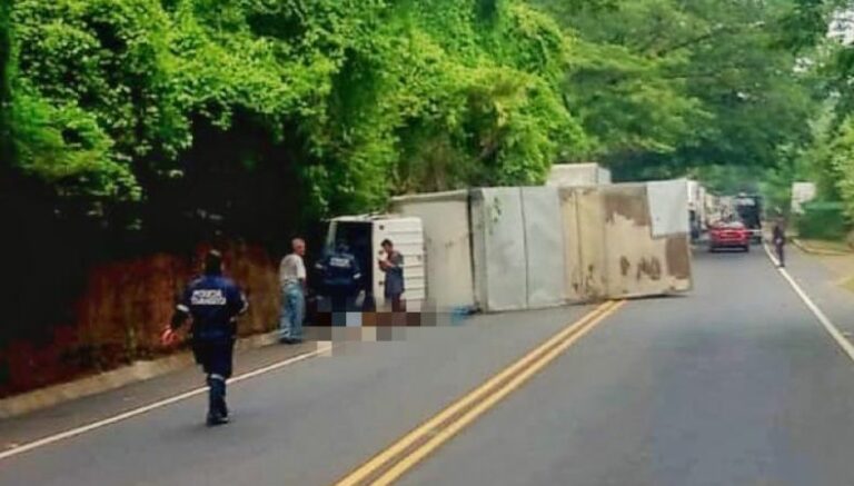 En el reporte policial, se indicó que el siniestro ocurrió en el kilómetro 77 ½ de la carretera Panamericana, jurisdicción de San Vicente. Entre las causas, la PNC adelanta que el camión perdió el control y volcó.