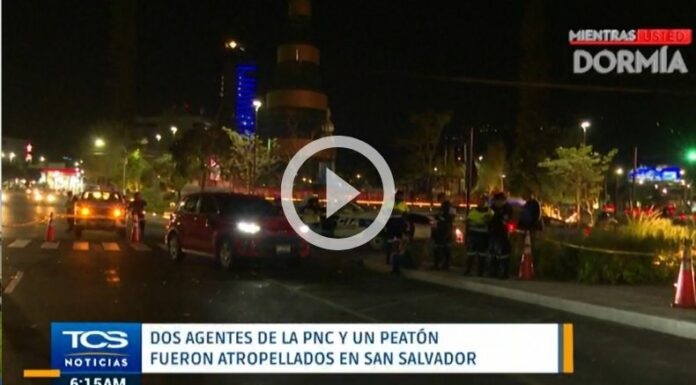 En horas de la noche del día de ayer, 10 de enero, Comandos de Salvamento reportó un accidente de tránsito donde dos agentes de la Policía Nacional Civil (PNC) y una persona más fueron atropellados frente a plaza Divino Salvador del Mundo, en San Salvador.