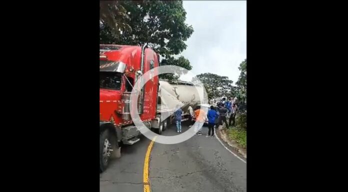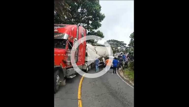 Esta tarde ha ocurrido un accidente de tránsito entre una rastra y un vehículo particular, en la calle que del Boquerón conduce hacia Quezaltepeque. En un video compartido en redes sociales se observa que el tráfico vehicular ha quedado totalmente detenido en ambos carriles.