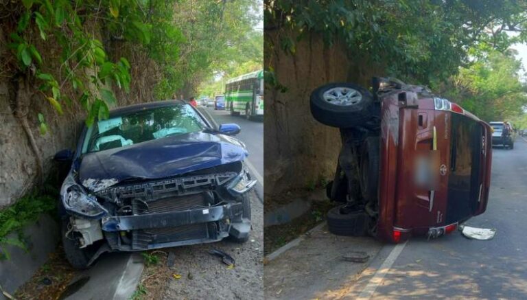 En el hecho son dos carros los involucrados en el que uno volcó y el otro salió del carril después de impactar. Agentes policiales se mantienen en la zona para agilizar el tráfico en la zona.