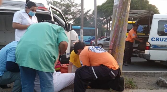 En horas de la mañana de este día 5 de mayo, socorristas de Comandos de Salvamento, informaron sobre un accidente en el Km 5 ½, del bulevar del Ejército, en San Salvador. El equipo atendió a una enfermera, que fue atropellada. Indicaron que la mujer fue traslada a un centro asistencial debido a las leves lesiones.