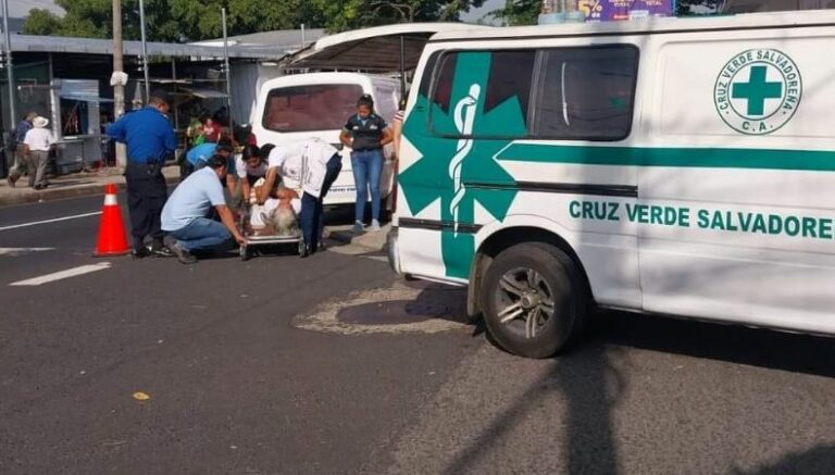 Elementos de Cruz Verde Salvadoreña reportó un accidente, donde una mujer, de 65 años de edad, fue atropellada, por lo que fue trasladada hacia un centro asistencial debido a los fuertes golpes.