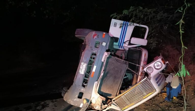 En horas de la noche del día de ayer, 4 de enero, varias instituciones de primera respuesta fueron alertados de un accidente de tránsito, donde una rastra (con placas guatemaltecas) volcó sobre la carretera Panamericana, a la altura de la vuelta La Herradura, entre los desvíos de Ciudad El Triunfo y Nueva Granada, en Usulután.