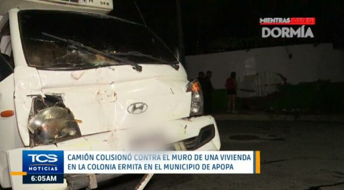 En horas de la noche de ayer, 9 de julio, un camión impactó contra el muro de una vivienda en la colonia Ermita, en el municipio de Apopa, San Salvador. Según el reporte de Comandos de Salvamento, el accidente se produjo debido a que el conductor viajaba en estado de ebriedad.