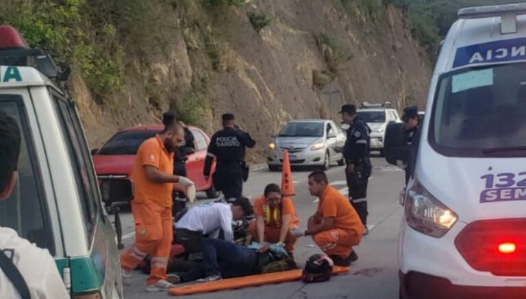 En horas de la mañana de este día 1 de junio, socorristas de Cruz Verde Salvadoreña y el Sistema de Emergencias Médicas (SEM), atendieron a un motociclista que impactó contra un camión. El accidente ocurrió en el km 30 de la carretera al Puerto de La Libertad. El paciente presentó múltiples lesiones, por lo que fue trasladado a un centro asistencial.
