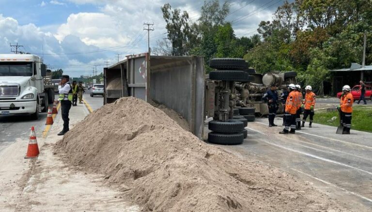 En horas del mediodía se reportó un accidente de tránsito, donde una rastra ha volcado en el redondel Claudia Lars, Quezaltepeque, La Libertad. Debido al percance, una persona resultó lesionada, por lo que ha sido llevada aún centro asistencial.