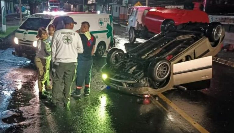 En horas de la madrugada de este día, Cruz Verde Salvadoreña, reportó sobre un accidente de tránsito, donde un vehículo volcó en la final 5.ª Avenida Norte de San Salvador.