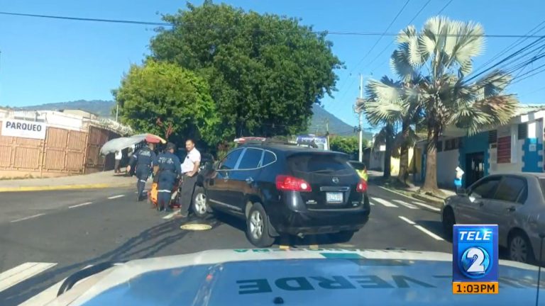 Miembros de Cruz Roja Salvadoreña llegaron al lugar y atendieron a dos personas que resultaron con lesiones leves. Este incidente generó un fuerte tráfico vehicular en la zona por varios minutos.