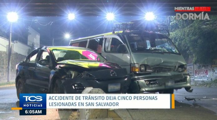 En horas de la noche de ayer, 7 de mayo, la Policía Nacional Civil (PNC), informó de un accidente de tránsito. Según el reporte, cinco personas resultaron lesionadas. El percance ocurrió sobre la 49 avenida sur, en San Salvador.
