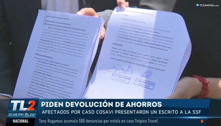 Afectados por el caso COSAVI, junto a abogados de la Unidad de Defensa de Derechos Humanos y Comunitarios de El Salvador (UNIDEHC), acudieron ante la Superintendencia del Sistema Financiero (SSF) para presentar un escrito en el que piden explicaciones acerca de la forma de devolución de sus ahorros.