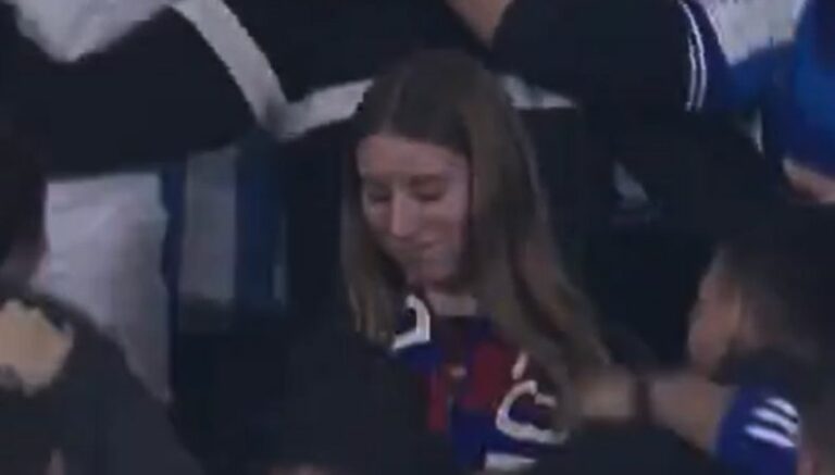 Por lo que, su alegría por conseguir el resultado a favor ante el Barcelona fue absoluta; sin embargo, la aficionada al conjunto culé que quedó en medio de la celebración no perdió la sonrisa que le ha provocado su equipo en las últimas jornadas.