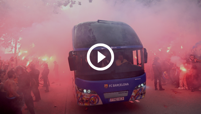 Cuando pasaba el bus del Barcelona con toda la plantilla, estos pensaron que era el de PSG y comenzaron a lanzar objetos a su propio equipo.