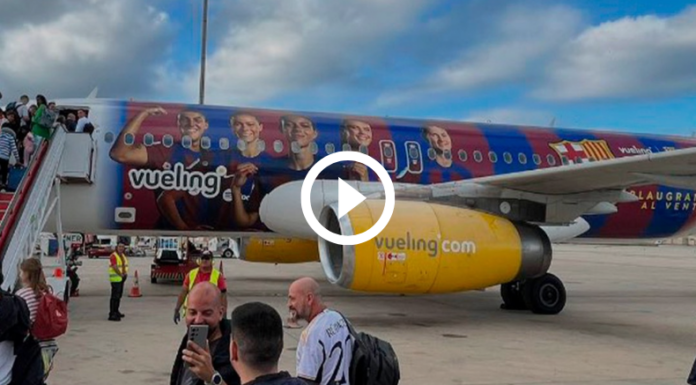 Los hinchas madridistas procedentes de Barcelona no anticipaban que su vuelo sería parte de una campaña publicitaria del FC Barcelona y la aerolínea Vueling.