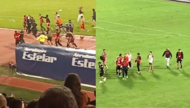 Corría el minuto 80′, cuando simpatizantes de los Rojos del Ávila dejaron los graderíos para ingresar al terreno de juego, muy molestos por el resultado. Fue allí cuando se encontraron con miembros de la plantilla, a quienes confrontaron de manera violenta.