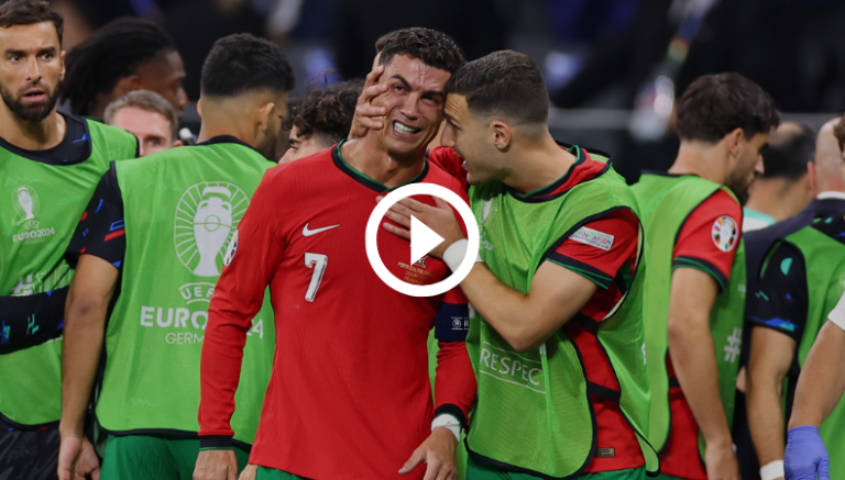 Los eslovenos han sabido cómo calentar el partido. Algunos aficionados comenzaron a gritar “Messi, Messi” cada que Cristiano Ronaldo toca el esférico.