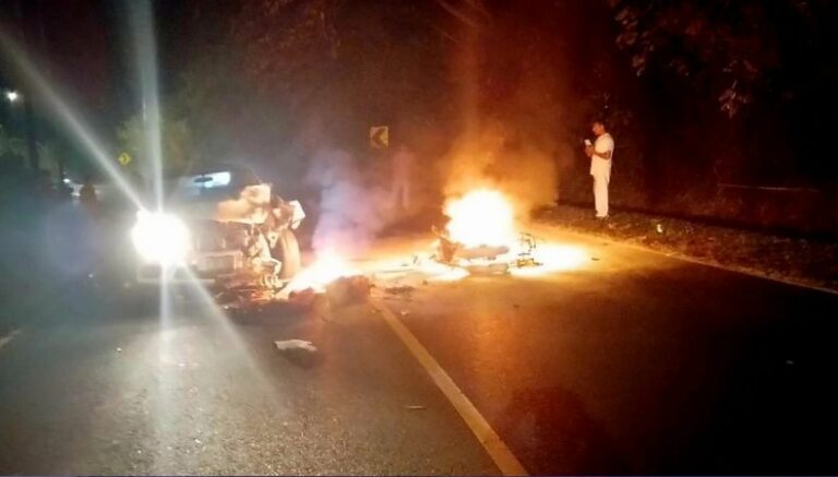 Las autoridades han informado que ambos se trasladaban en una motocicleta, cuando impactaron contra un vehículo y del impacto, la motocicleta se incendió. La agente ha sido trasladada a un centro asistencial.