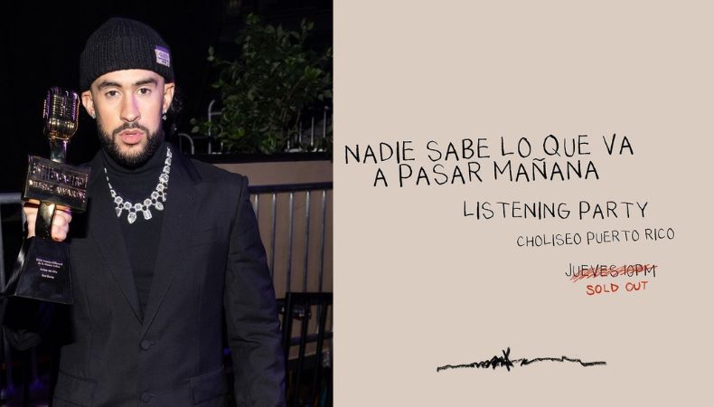 El cantante del género urbano, Bad Bunny, compartió el pasado 9 de octubre la noticia sobre su nuevo álbum titulado “Nadie sabe lo que va a pasar mañana”, el cual será publicado este próximo viernes 13. Entonces, para celebrar el lanzamiento, “Move Concerts Puerto Rico”, compartió el anuncio sobre la realización de un “Listening Party”, previo a la publicación del repertorio de canciones.