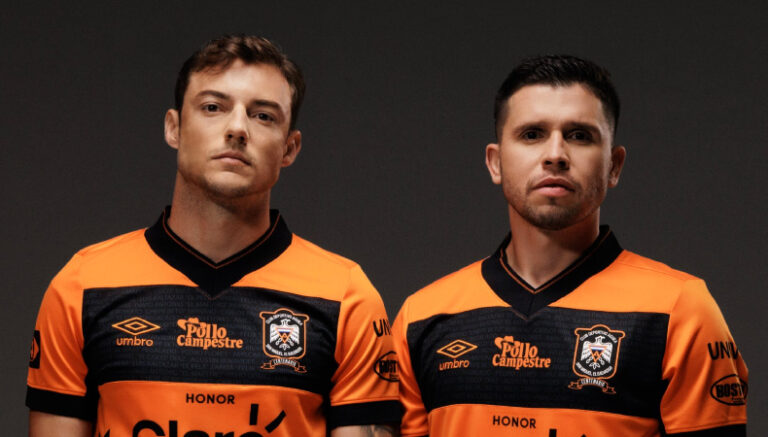 La indumentaria mantiene el tradicional naranja con una franja en color negro en el pecho, con detalles en color negro en las mangas y cuello.