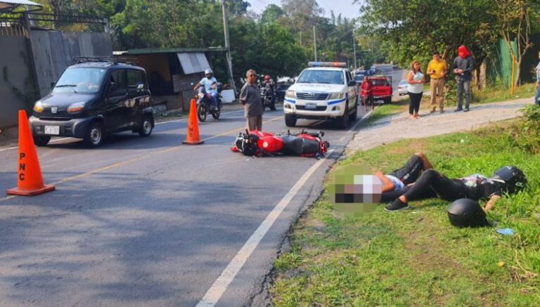 Por medio de su cuenta de X, la PNC informó sobre un accidente vial que ocurrió sobre el kilómetro 12 de la carretera que conduce hacia Panchimalco. Según la información proporcionada por las autoridades, un motociclista y su acompañante resultaron lesionados, luego de ser impactados por el conductor de un vehículo.
