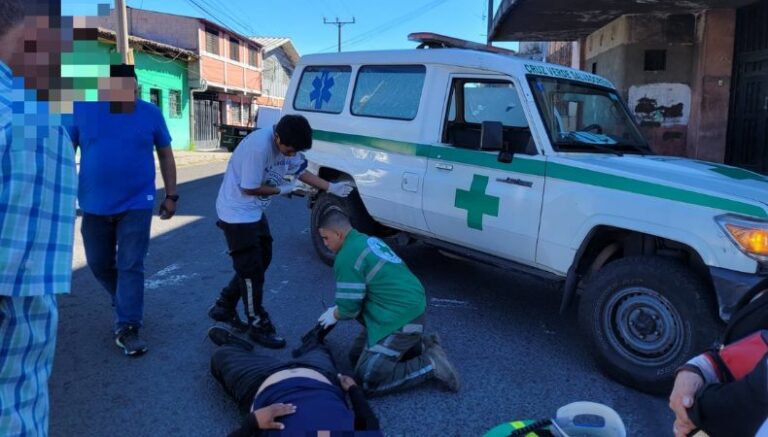 Los informes indican que el percance ocurrió en la calle 18 Poniente, Frente al excine Iberia, en San Salvador. La víctima fue atendida por socorristas.