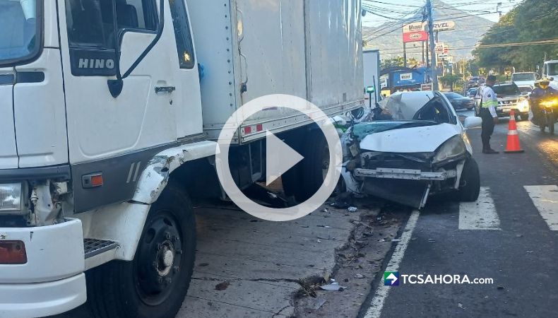 Esta mañana, un accidente se reporta desde el bulevar Merliot, en las cercanías del redondel el Platillo. Aquí, un carro particular y un transporte de carga son los involucrados.