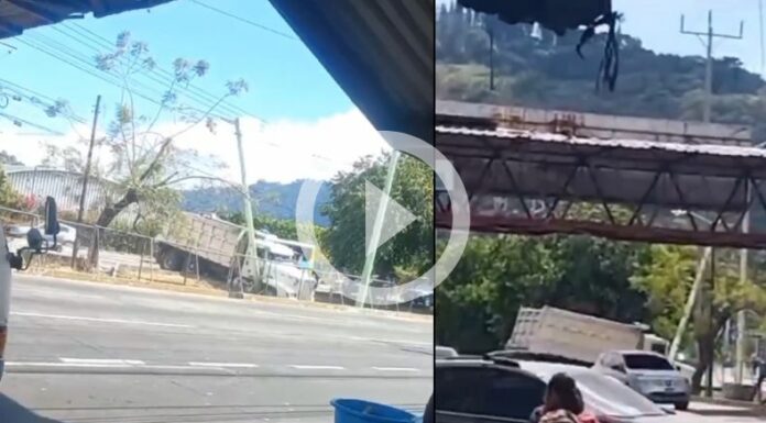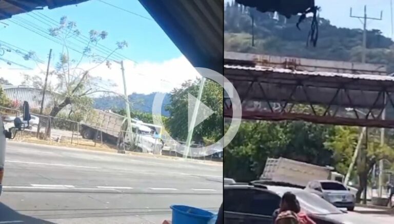 El accidente lo protagoniza un transporte de carga pesada y un pickup. El camión de volteo ha quedado en la cuneta y la zona verde así se observa en el video.