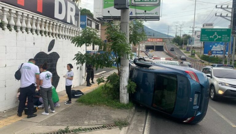 A pesar de la celebración del 15 de septiembre, los accidentes viales parecen ser una constante diaria en el país. Casi al finalizar la tarde, Cruz Verde Salvadoreña reportó un accidente de tránsito en la Avenida Jerusalén. Un automóvil tipo sedán volcó.