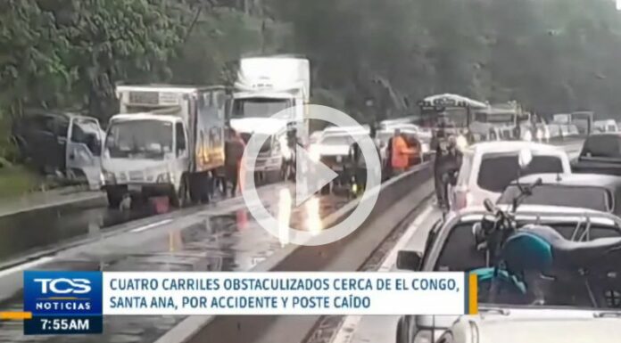 Por la magnitud del choque, en el carril que conduce de occidente hacia San Salvador se reporta también el cierre de la vía debido a que un poste se ha caído en la zona.