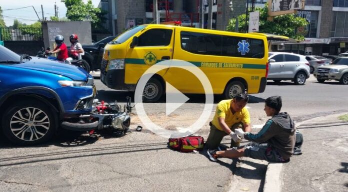 Un accidente vial entre una motocicleta y un vehículo particular atiende esta mañana, Comandos de Salvamentos. El siniestro se originó en la primera calle Poniente y 63 avenida en San Salvador.