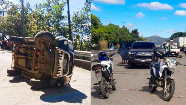Durante este martes 2 de enero, han ocurrido distintos accidentes de tránsito en varios puntos del país. La Policía Nacional Civil (PNC), ha reportado un percance vial en la calle hacia el cantón Las Pilas, a la altura del Caserío Teosinte, San Ignacio, Chalatenango. Según información de las autoridades, la conductora del vehículo perdió el control y volcó.