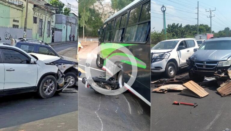 Un triple accidente en el kilómetro 72 de la carretera que de Sonsonate conduce hacia Acajutla. Aquí, una persona que transportaba hierro en una bicicleta se atravesó la carretera de manera imprudente, los conductores no lograron frenar a tiempo y chocaron.