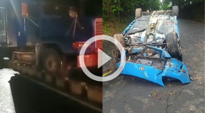 Un cabezal se accidentó con los separadores de bulevar del Ejército, en San Salvador. Las autoridades removieron el vehículo y luego realizaron limpieza por derrame de aceite.