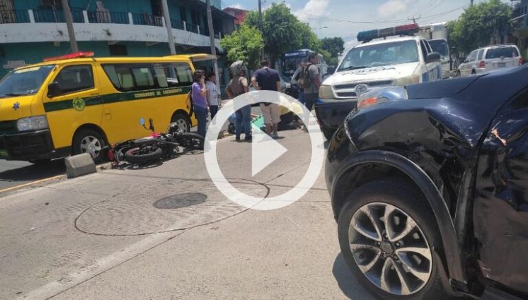 Otro percance similar fue reportado desde la carretera de Oro en Soyapango. Los equipos de rescate brindaron asistencia al conductor y acompañante que se transportaban en motocicleta, este último tuvo que ser llevado hasta un centro médico.