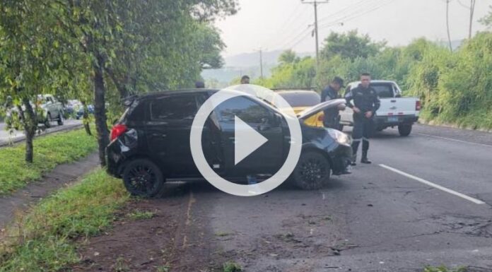 Se reporta un accidente de tránsito sobre la carretera de Oro, en el municipio de Soyapango, a la altura del puente San José. La conductora del vehículo perdió el control e impactó contra un árbol; en consecuencia, resultó lesionada, adelantó la Policía Nacional Civil (PNC).