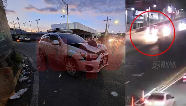 Las cámaras de videovigilancia grabaron un percance entre un vehículo particular y una motocicleta que circulaban sobre el bulevar Los Próceres, Zona 4.