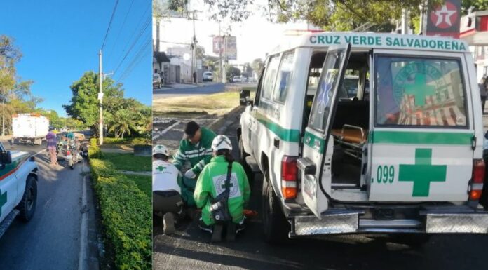 Socorristas de Cruz Verde Salvadoreña atendieron a un motociclista que sufrió un accidente en la 79 avenida Sur, en el sentido que conduce hacia la Zona Rosa, en San Salvador.