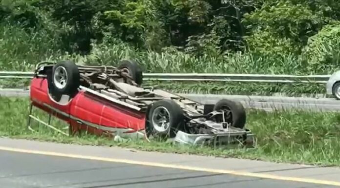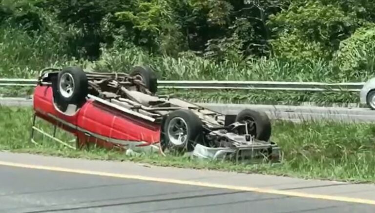 Un percance se reporta a la 1:20 en la carretera de Oro. En el reporte se indica que es a la altura del puente las mulas. Hay un vehículo volcado y otro que impactó con una valla publicitaria en el km 20.